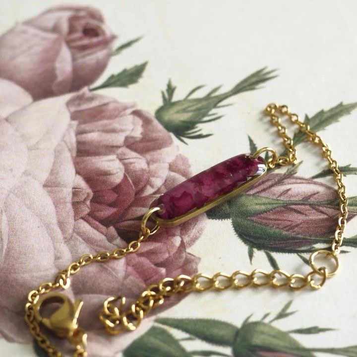 Tiny rose flowers are delicately preserved within a sleek cylindrical form, creating a piece that speaks in whispers rather than declarations. Minimal and refined, this bracelet represents love in its calmest, most enduring state—steady, intentional, and deeply felt. Roses here symbolize tender commitment and emotional constancy, a reminder that the most powerful connections are often the softest ones.